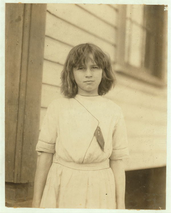 All these are workers in the Cherokee Hosiery Mill, Rome, Ga. Noon, April 10, 1913. The youngest are turners and loopers. Other Hosiery Mills around here employ children of 8 and 9 years. Some of these appear to be as young. Location: Rome, Georgia.