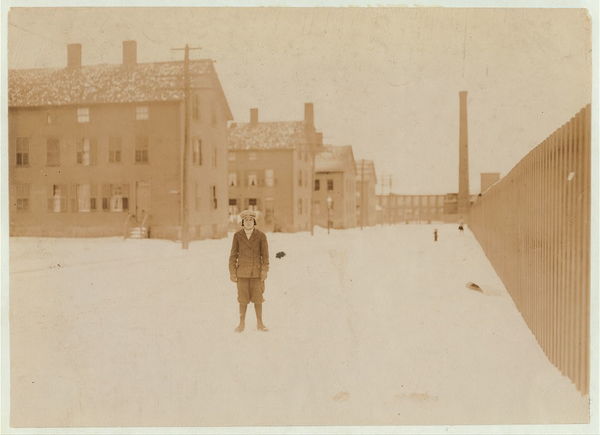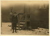 Bad housing and congestion. Mikeal Wikbas or Wikras?, (about 14 years old) at doorway of home. 3 Hampton Court. Works in Wamsutta Mill. Location: New Bedford, Massachusetts.