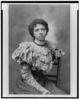 African American woman, three-quarter length portrait, seated with left arm over back of chair, facing front