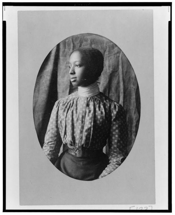 African American woman, half-length portrait, facing slightly right