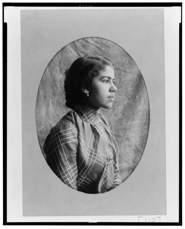 African American woman, half-length portrait, facing right
