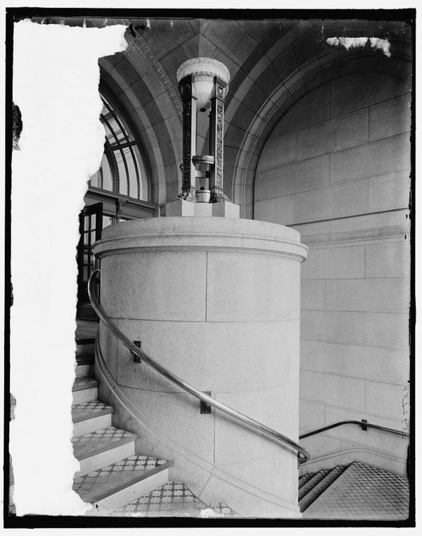 Alabaster lamps, vestibule, stairs, Chicago & North Western Railway station, Chicago, Ill.