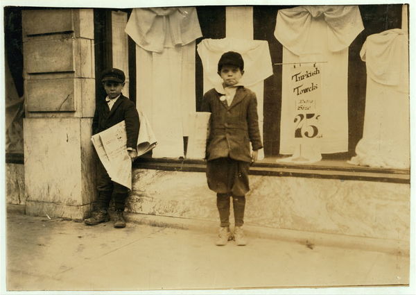 Alfred Brook, 200 W. Pottawotamie St. 8-year-old newsie. Everett Glin on the right - see 4768. Location: Oklahoma City, Oklahoma / Lewis W. Hine.