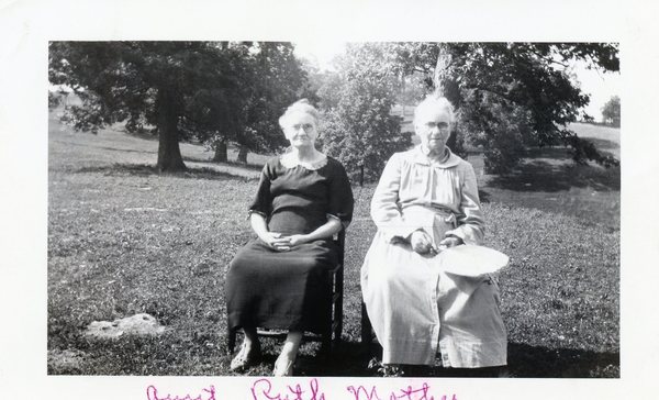 Alice Hedger Moore and her sister Ruth Hedger Maurer on the Moore Homestead
