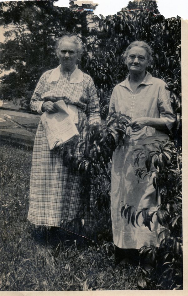 Alice Hedger Moore and her sister Ruth Hedger Maurer on the Moore Homestead