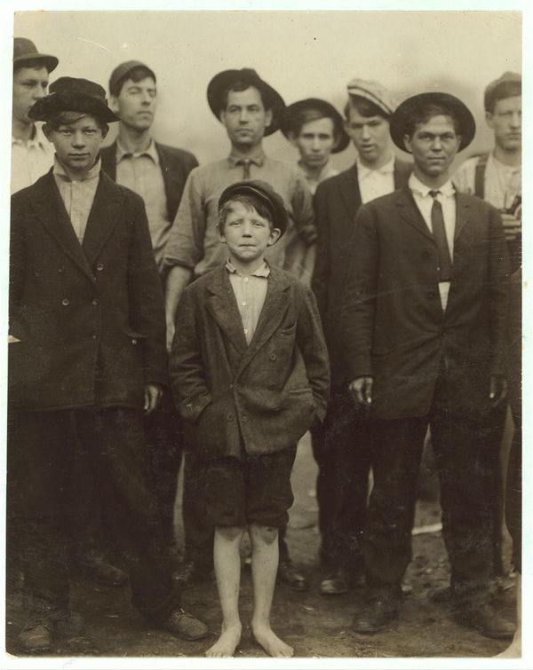 Neil Power, 10 years old, he said, "Turn stockings in Rome (Ga) Hosiery Mill." A shy, pathetic figure. "Haint been to school much." Location: Rome, Georgia.