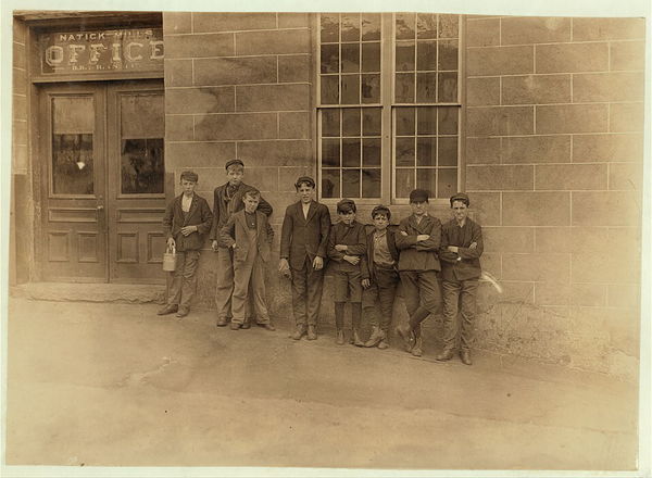 Noon hour, April 17, 1909. Natick, (R. I.) Mills. Location: Natick, Rhode Island.