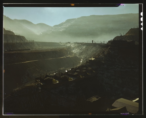 View of the Utah Copper Company open-pit mine workings at Carr Fork, as seen from the railroad, Bingham Canyon, Utah