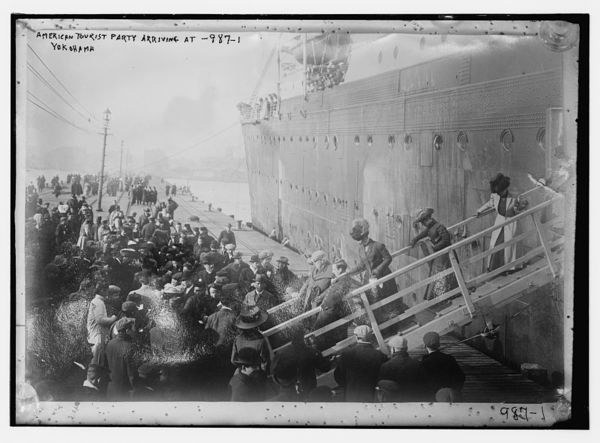 Mrs. Spafford and her two daughters: Mrs. Vester and Miss Grace Spafford, sitting among potted plants, American Colony, Jerusalem