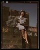 Annette del Sur publicizing salvage campaign in yard of Douglas Aircraft Company, Long Beach, Calif.