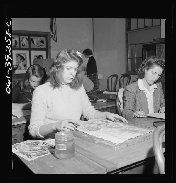 Washington, D.C. Miss Norma Kale, an English teacher at Woodrow Wilson High School, greeting some of her students who have come to her home on a Sunday afternoon