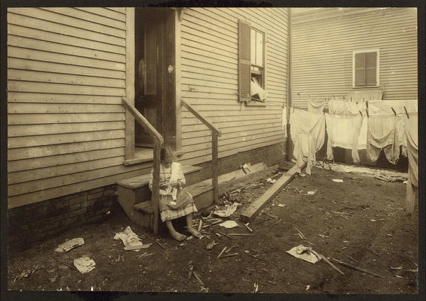 Annie Fedele crocheting on underwear out in the filthy back yard. This is one of the places she works on crochet. See other photos and Home Work report. Location: Somerville, Massachusetts.