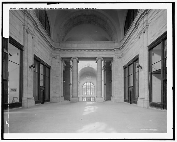 Arcade entrance to loggia and main waiting room, Pennsylvania Station, New York, N.Y.