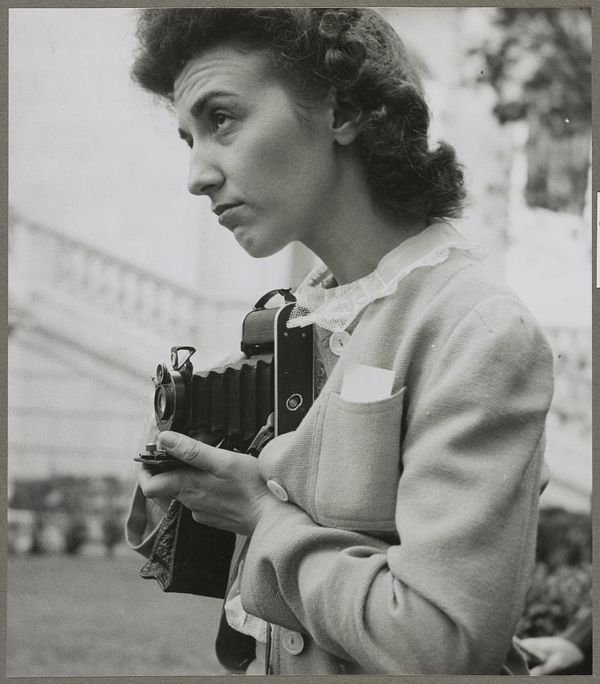 Arlington Cemetery, Arlington, Virginia. A girl taking a picture of the ceremony of laying a wreath on the Tomb of the Unknown Soldier