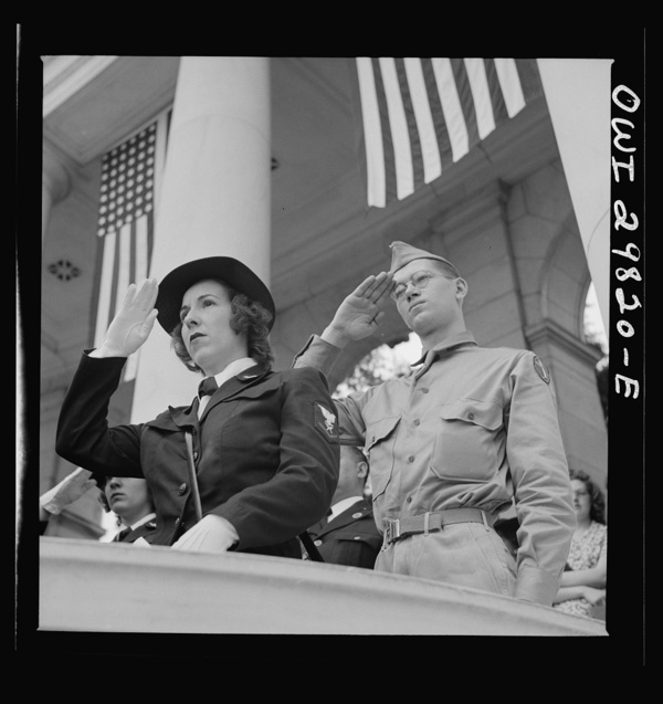 Arlington Cemetery, Arlington, Virginia. A WAVE (Women Accepted for Volunteer Emergency Service) and a soldier at the Memorial Day services