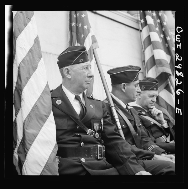 Arlington Cemetery, Arlington, Virginia. American legion color bearer at the Memorial Day services in the amphitheater