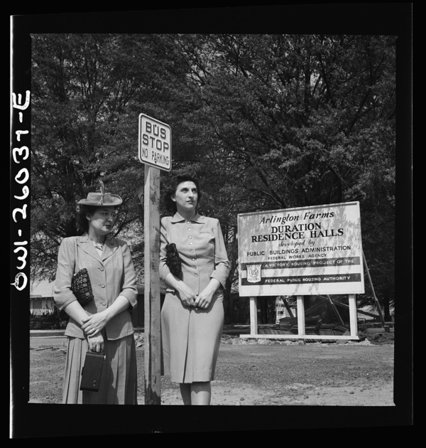 Arlington, Virginia. Waiting for the bus at Arlington Farms, a residence for women who work in the U.S. government for the duration of the war