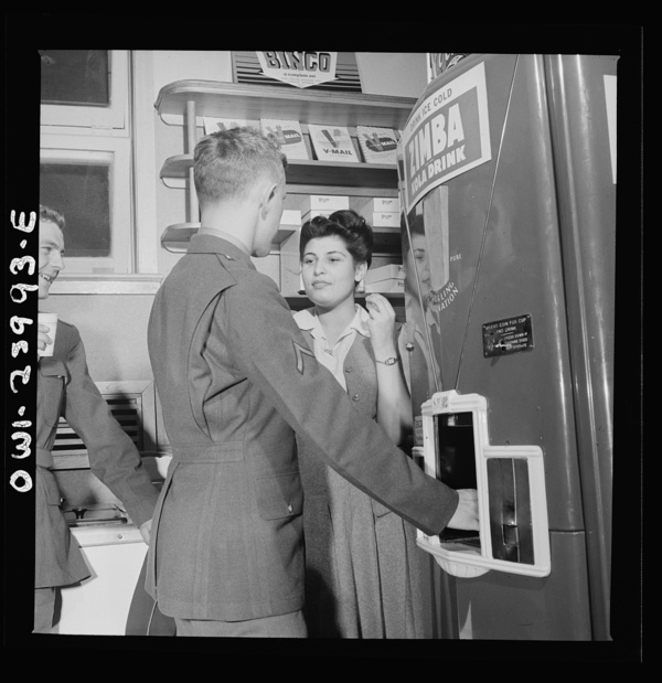 Arlington, Virigina. A soldier treating his date to a coke in the service shop at Idaho Hall, Arlington Farms, a residence for women who work in the U.S. government for the duration of the war