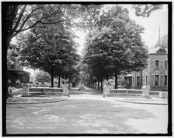 River and boat houses, Genesee Valley Park, Rochester, N.Y.