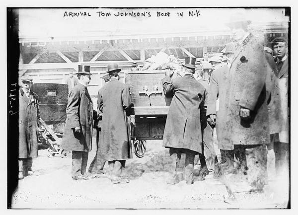 Arrival of Tom Johnson's body in New York