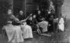 Margurett Powell Rider (violin) and Harriett Powell Myers (banjo) play for family members outside...