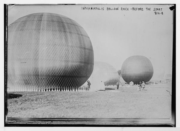 Crowd at balloon race, start of balloon "Indiana", Indianapolis