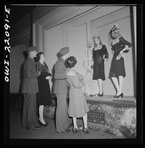 Baltimore, Maryland. Soldiers and their girls window shopping in the evening