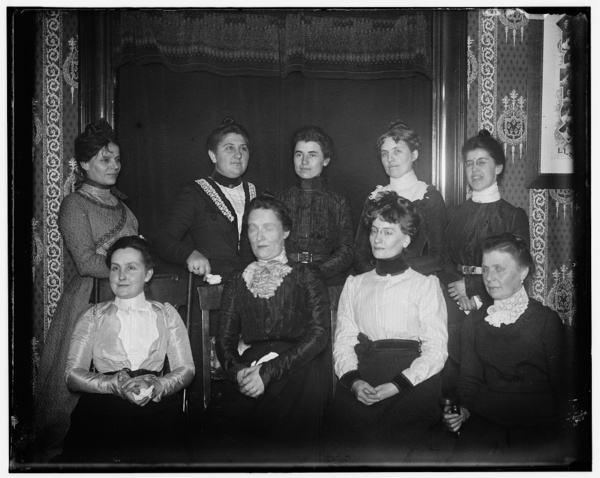 Milton Wright, Ivonette Wright, and Leontine Wright seated on sled