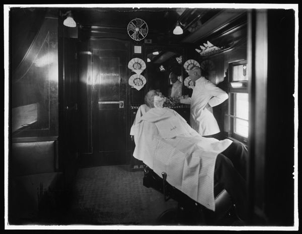 Barber shop on a deluxe overland limited train
