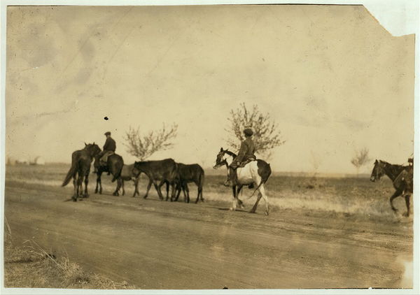 Bartrum Choate, a 12-year-old boy driving colts to town. Works for W.F. Barber, Route 3, Lawton, Okla. Location: Lawton vicinity, Oklahoma / Lewis W. Hine.