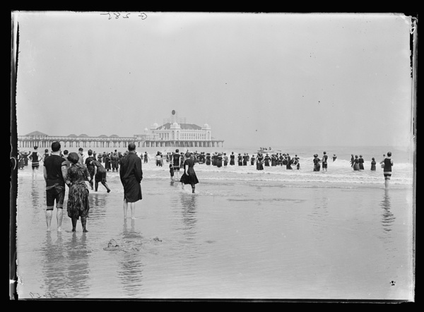 Bathers, Steel Pier in background, Atlantic City, N.J.