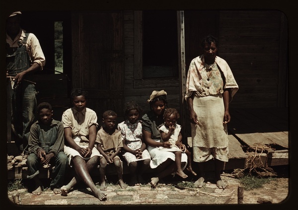 Bayou Bourbeau plantation, a FSA cooperative, Natchitoches, La. A family (?) seated on the porch of a house
