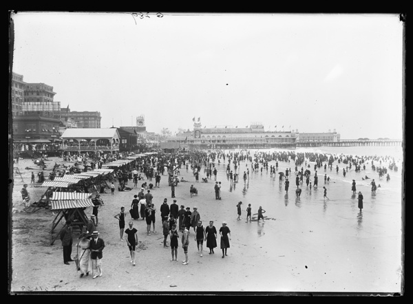 Bathers, Steel Pier in background, Atlantic City, N.J.