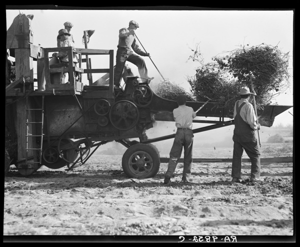 Bean thresher. Mechanized agriculture between Turlock and Merced, California
