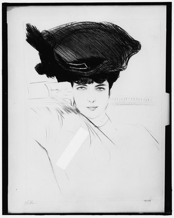 Marguerite wearing hat with hand on chin