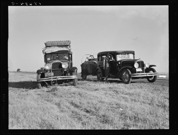 Between Tulare and Fresno. Migrants on the road. California. See general caption