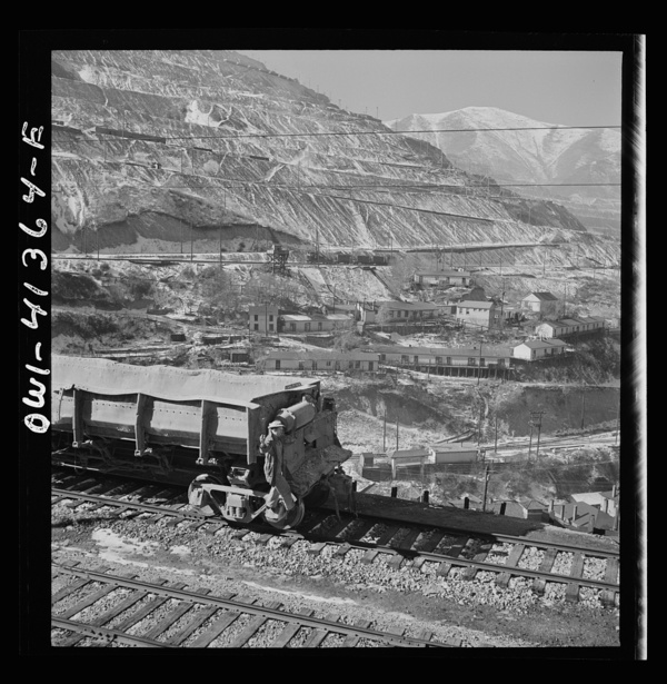 Bingham Canyon, Utah. Loading ore into car at an open-pit of the Utah Copper Company