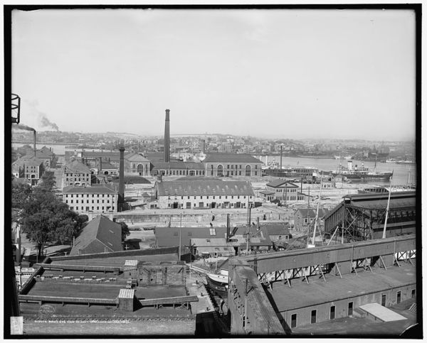 Bird's eye view of Navy Yard, Charlestown, Mass.