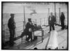 Officer on boat deck telephoning by Collins system between Japanese ships