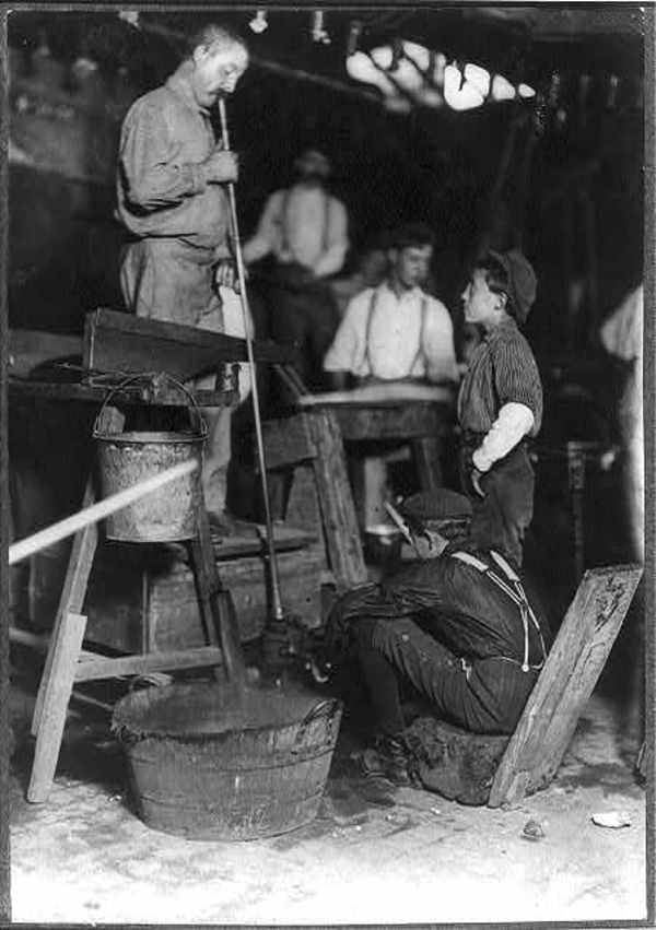Blower and Mold Boy, Seneca Glass Works, Morgantown, W. Va. (see label on #171) (see photos 170 & 171). Location: Morgantown, West Virginia.