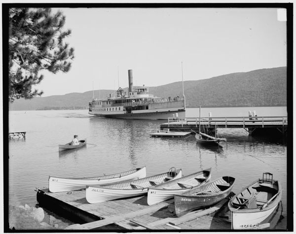 Steamer approaching Rogers' Rock landing, Lake George, N.Y.