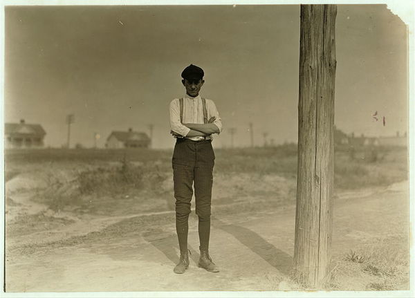 Bob Burton, Gastonia, N.C. 15 years old. A typical adolescent, overgrown, thin, anaemic sic. Been in mill for 8 years. Doffing still in Ozark Mills. Gastonia, North Carolina.