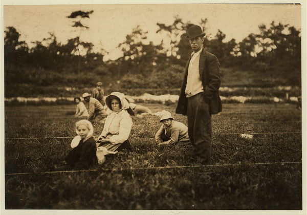 Boss of this bog and his wife and two little children picking. Nine out of the seventy workers were from 6 to 12 years old. Mostly Syrians from Boston and Providence. Location: East Wareham vicinity - Maple Park Bog, Massachusetts.