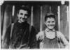 Going home to lunch! Two boys from Singer Mfg. Co., Small boy -- Charles Bailey, 316 Scholum St., Is he Fourteen years old?. Location: South Bend, Indiana.