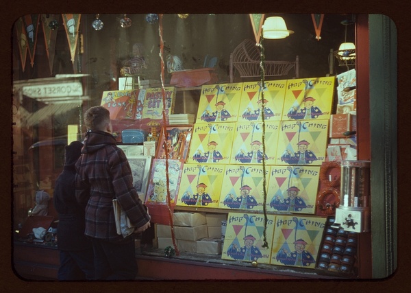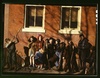 Children aiming sticks as guns, lined up against a brick building, Washington, D.C.?