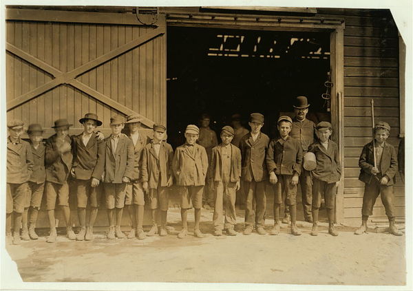 Boys going home from Glass Works, Monongah Glass Works, Fairmont, W. Va. Location: Fairmont, West Virginia.