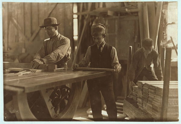 Boys taking away from saws and brading. Schultze, Waltman & Co. Planing Mill Evansville, Ind. Location: Evansville, Indiana.