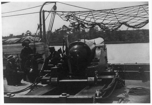 Bringing parrott gun into position on board gun boat "Mendota," July 10, 1864
