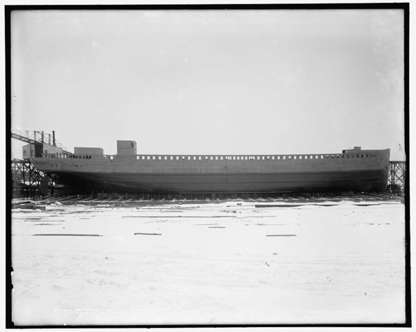 Broadside view on launching cradle, launch S.S. Tionesta, Dec. 15, 1902