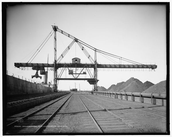 Brown electric hoist, unloading ore, Buffalo, N.Y.